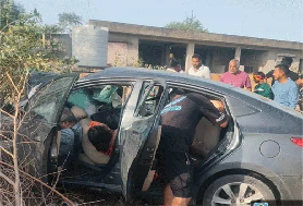 कार के आगे का हिस्सा चकनाचूर कार के आगे का हिस्सा पूरी तरह चकनाचूर हो गया। पांचों कार में बुरी तरह फंस गए थे। हादसे की सूचना पर रायसर पुलिस मौके पर पहुंची। पुलिस को आशंका है कि ओवरटेक करने के चक्कर में हादसा हुआ है।