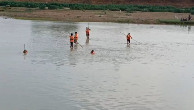 प्रयास किया जा रहा है। दो घंटे से ज्यादा समय बीत जाने के बावजूद अब तक दोनों बच्चों के शव बरामद नहीं हो पाए हैं। घटनास्थल पर भारी संख्या में लोग जुटे हुए हैं और परिजनों का हाल भी बेहाल है।