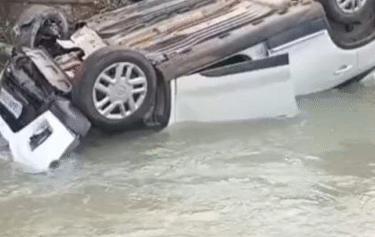 मंदिर जा रहे श्रद्धालुओं की कार पुल से गिरी