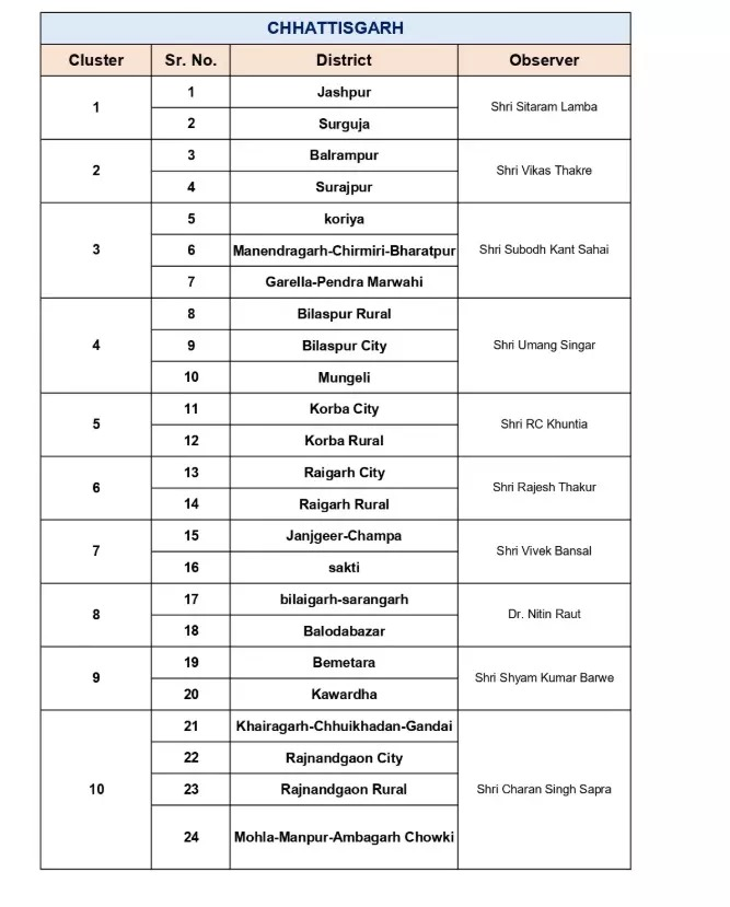 रायपुर। छत्तीसगढ़ कांग्रेस में संगठन को ज़मीनी स्तर पर मज़बूत करने की कवायद तेज़ हो गई है। प्रदेश कांग्रेस कमेटी ने जिला अध्यक्षों के चुनाव के लिए रायशुमारी शुरू कर दी है, जिसके लिए विभिन्न जिलों में पर्यवेक्षकों (Observers) की नियुक्ति की गई है।