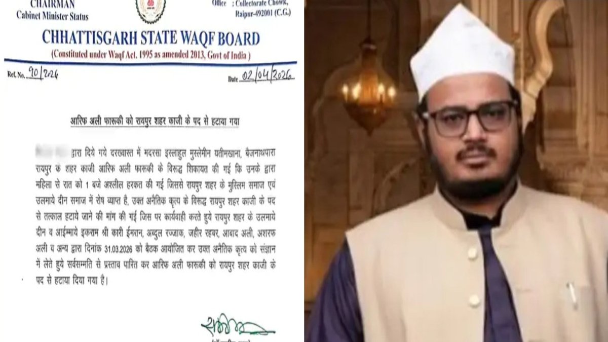 रायपुर (बैजनाथपारा): राजधानी रायपुर के बैजनाथपारा स्थित मदरसा इस्लाहुल मुस्लेमीन यतीमखाना के शहर काजी आरिफ अली फारूकी को उनके पद से तत्काल प्रभाव से बर्खास्त कर दिया गया है। काजी पर पद की गरिमा के विरुद्ध आचरण करने और महिलाओं के साथ फोन पर अश्लील बातचीत करने के बेहद गंभीर आरोप लगे हैं। मामला तब उजागर हुआ जब पीड़ित महिलाओं ने काजी की काली करतूतों के सबूत समाज के सामने रखे।