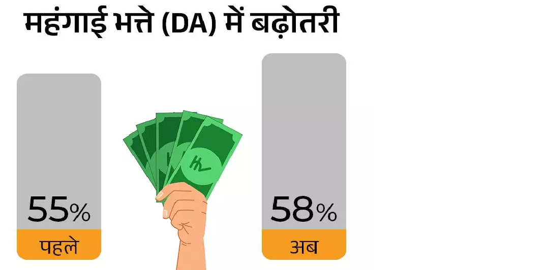DA में 3% की बढ़ोतरी से अलग-अलग वेतनमान वाले कर्मचारियों के वेतन में हज़ारों रुपये की बढ़ोतरी होगी। उदाहरण के लिए, जिनका बेसिक वेतन ₹30,000 है, उन्हें हर महीने ₹900 अतिरिक्त मिलेंगे, और तीन महीने का एरियर ₹2,700 के करीब होगा।