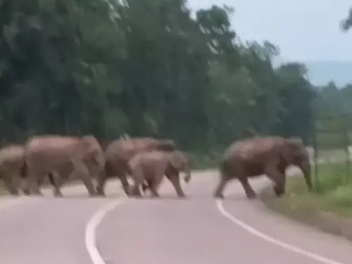 जब हाथियों का झुंड रोड क्रॉस कर रहा था तब सड़क के दोनों ओर गाड़ियों की लंबी कतार लग गई और यातायात कुछ समय के लिए रुक गया। इस झुंड को देखने के लिए लोगों की भीड़ भी जमा हो गई थी। वहीं वन विभाग ऐप के जरिए हाथियों की निगरानी कर रहा। सायरन सिस्टम से गांव वालों को अलर्ट किया जा रहा।