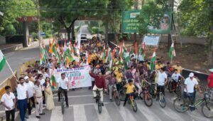 खेल एवं युवा मंत्रालय, भारत सरकार द्वारा आरंभ किए गए ‘फिट इंडिया साइकिल रैली’ के अंतर्गत दिनांक 1 जून 2025, रविवार को डीएवी पब्लिक स्कूल बिलासपुर छत्तीसगढ़ द्वारा प्रातः 6:30 बजे साइकिल रैली का भव्य आयोजन किया गया। इस कार्यक्रम का शुभारंभ जिला शिक्षा अधिकारी श्री अनिल तिवारी एवं डीएवी स्कूल के प्रधानाचार्य के. पार्थीपन द्वारा किया गया । रैली के प्रारंभ में डीएवी स्कूल के विद्यार्थियों द्वारा बैंड के माध्यम से प्रस्तुत देशभक्ति धुन ने सभी के हृदय में रैली के प्रति जोश और उत्साह को चरम सीमा पर पहुंचा दिया। तत्पश्चात कार्यक्रम के मुख्य अतिथि श्री अनिल तिवारी जी के द्वारा ‘फिट इंडिया’के तत्वावधान में शपथ ग्रहण कराया गया।इस साइकिल रैली में लगभग 300 से अधिक लोगों की भागीदारी रही जिसमें छात्र-छात्राएं, अभिभावकगण ,शिक्षक शिक्षिकाएं , पुलिसकर्मी एवं एसईसीएल अधिकारीगण ने बढ़ चढ़कर हिस्सा लिया। इस रैली का आरंभ डीएवी स्कूल प्रांगण से हुआ तथा वसंत विहार परिसर व सीपत रोड़ से भ्रमण करते हुए स्कूल प्रांगण में सम्पन्न हुआ।
