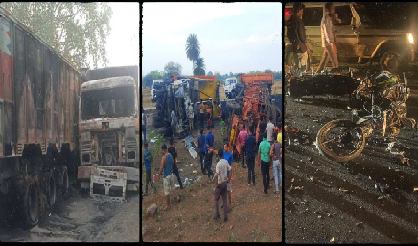 पहली दुर्घटना कोरबा जिले से सामने आया है। जहां दर्री थाना क्षेत्रान्तर्गत गेरवाघाट पुल के आगे एक ट्रक तेज रफ्तार में खड़ी हुई दूसरी ट्रक से जा टकराई। जोरदार टक्कर के बाद दोनों वाहनों में आग लग गई। हादसे के बाद अफरा-तफरी का माहौल बन गया।
