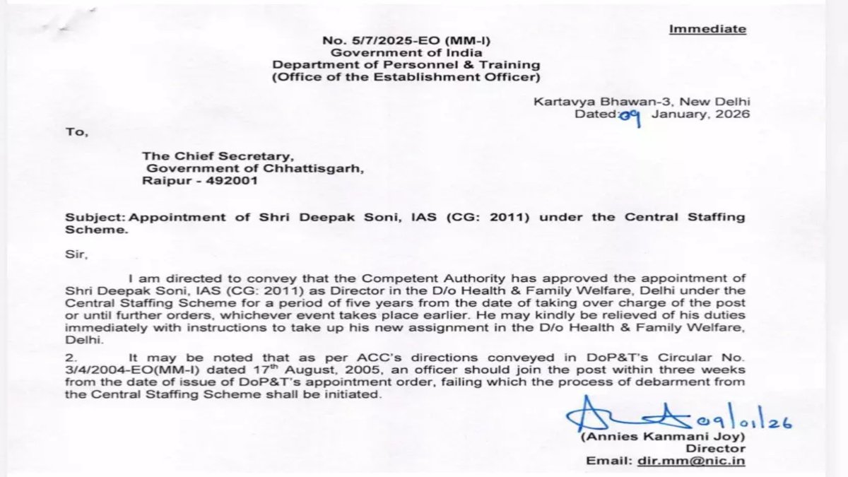 आईएएस वर्ष-2011 बैच के अधिकारी दीपक सोनी इससे पहले दंतेवाड़ा कलेक्टर के रूप में भी कार्यरत रह चुके हैं। राज्य सरकार ने उनकी प्रतिनियुक्ति के लिए सहमति दी थी।