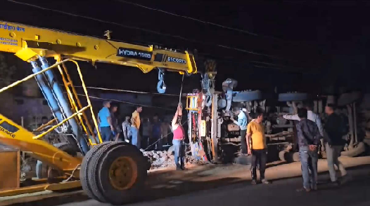 अधूरे बाईपास ने ली राहगीरों की चैन: ट्रक पलटने से मची अफरा-तफरी