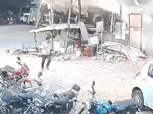 हादसे के बाद सड़क पर अफरा-तफरी मच गई, और लोग जान बचाने के लिए इधर-उधर भागने लगे। यह पूरी घटना पास लगे कैमरे में कैद हो गई। घटना की जानकारी मिलते ही पुलिस और फायर ब्रिगेड की टीमें तुरंत मौके पर पहुंचीं।