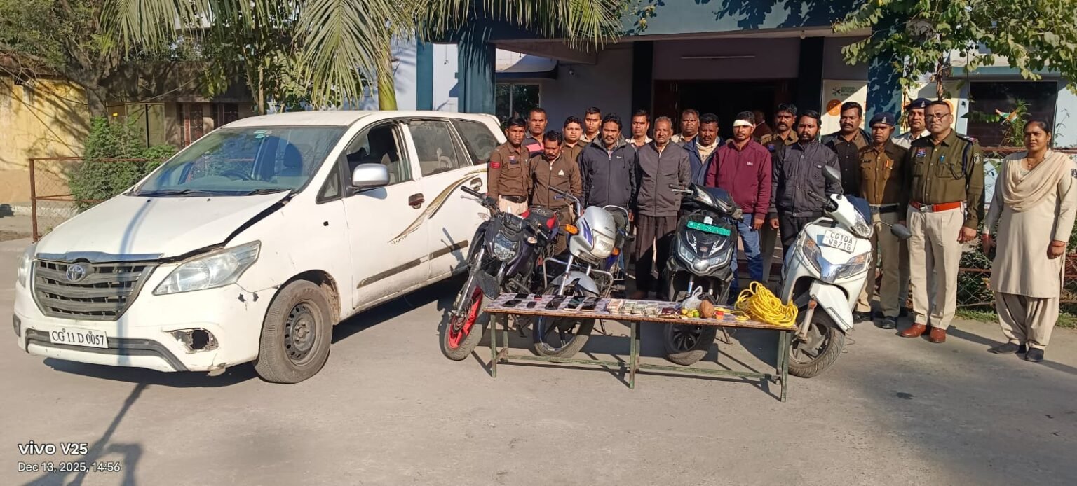 थाना उरगा में अपराध क्रमांक 544/2025 धारा 103(1), 61(2), 3(5) भारतीय न्याय संहिता (BNS) के तहत मामला दर्ज किया गया। विवेचना के दौरान 6 आरोपियों को गिरफ्तार किया गया। आरोपियों के कब्जे से नायलॉन रस्सी, तंत्र-मंत्र सामग्री, मोबाइल फोन, मोटरसाइकिल, स्कूटी, इनोवा कार एवं 5 लाख रुपये नगद सहित अन्य आपत्तिजनक सामग्री जब्त की गई है।