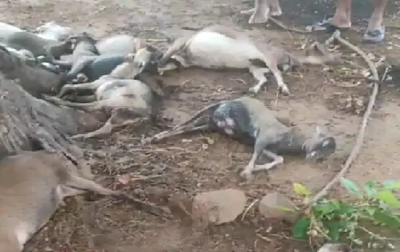 बकरियां करीब एक घंटे तक मैदान में चर रही थीं। इस दौरान हल्की बारिश के साथ आकाशीय बिजली चमकने लगी। सभी बकरियां एक पेड़ के नीचे एकत्रित हो गईं। अचानक आकाशीय बिजली गिरने से सभी बकरियों की मौत हो गई। किसान उस समय पास के एक दूसरे पेड़ के नीचे थे।