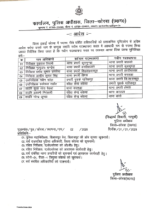 कोरबा में बड़ा प्रशासनिक फेरबदल, कुसमुंडा, हरदीबाजार, रामपुर सहित कई थाने–चौकियों के प्रभारी बदले
