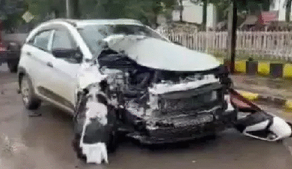 CG: DEO की कार और हाइड्रा क्रेन की टक्कर में बड़ा हादसा, हाथ में फ्रैक्चर, पत्नी सुरक्षित