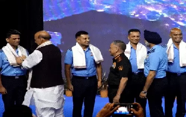 नई दिल्ली।’ केंद्रीय रक्षा मंत्री राजनाथ सिंह ने रविवार को इंडियन एयरफोर्स स्पेस कॉन्फ्रेंस में भाग लिया। उन्होंने ग्रुप कैप्टन शुभांशु शुक्ला और उनके अन्य सहयोगियों, ग्रुप कैप्टन पी वी नायर, ग्रुप कैप्टन अजीत कृष्णन और ग्रुप कैप्टन अंगद प्रताप को सम्मानित किया। इस दौरान चीफ ऑफ डिफेंस स्टाफ जनरल अनिल चौहान और वायुसेना प्रमुख एयर मार्शल एपी सिंह भी मौजूद रहे।
