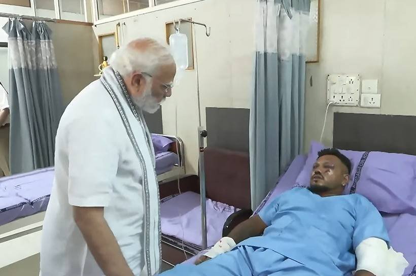अहमदाबाद।’ में हुए प्लेन हादसे में जिंदा बचे इकलौते यात्री रमेश विश्वास कुमार से पीएम मोदी ने शुक्रवार को मुलाकात की। रमेश हादसे में घायल हैं और सिविल अस्पताल में भर्ती हैं।