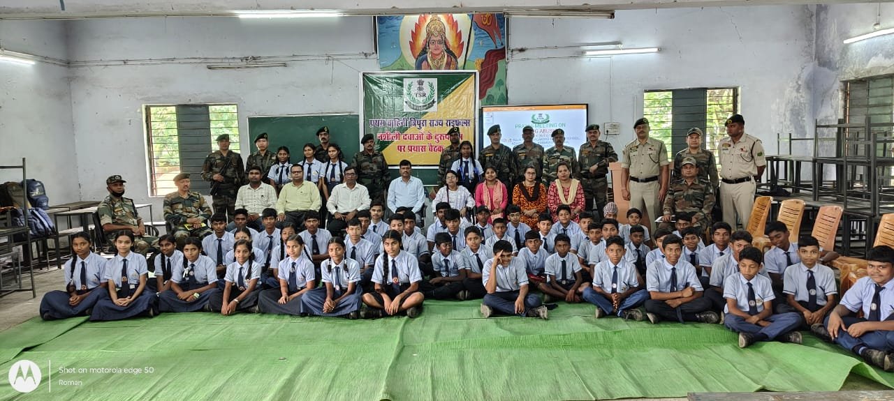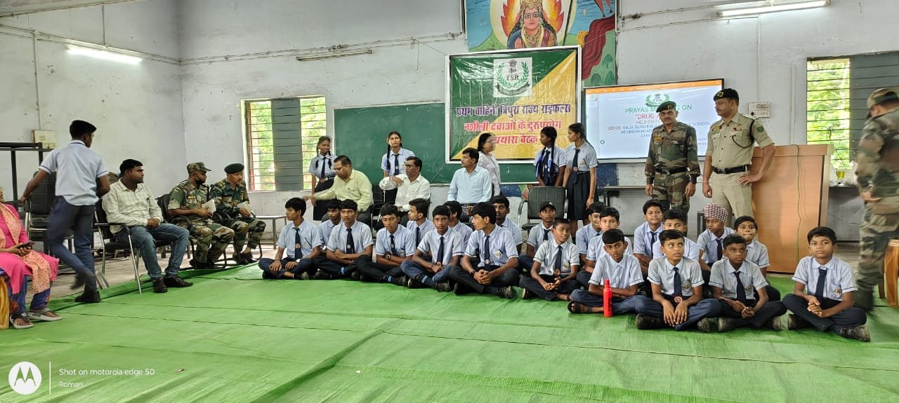 कोरबा/कुसमुंडा – नशा मुक्ति दिवस के अवसर पर राजा बाबा बालकदास शासकीय उच्चतर माध्यमिक विद्यालय,आदर्श नगर में संगोष्ठी का आयोजन “एक प्रयास”पहली बटालियन त्रिपुरा स्टेट राइफल्स द्वारा किया गया।कार्यक्रम के मुख्य अतिथि उप कमांडेंट मिहिर दत्ता ने शिरकत की।इस मौके पर स्कूल के बच्चों ने बढ़ चढ़कर हिस्सा लिया।श्री दत्ता ने समाज में फैल रहे नशे के जाल से बच्चों को दूर रहने की सलाह दी साथ ही समाज में व्यसन से होने वाले दुष्प्रभावों का व्यापक स्तर पर प्रचार प्रसार करने की बात कहते हुए एक नशा मुक्त समाज बनाने का आग्रह किया।इस कार्यक्रम में टीएसआर के अन्य अधिकारी व कर्मचारियों भी शामिल हुए।कार्यक्रम के अंत में स्कूल के प्राचार्य श्री साहू ने मंचस्थ सभी अतिथियों का आभार व्यक्त करते हुए अपने छात्रों से एक ड्रग मुक्त समाज की उम्मीद जताई।