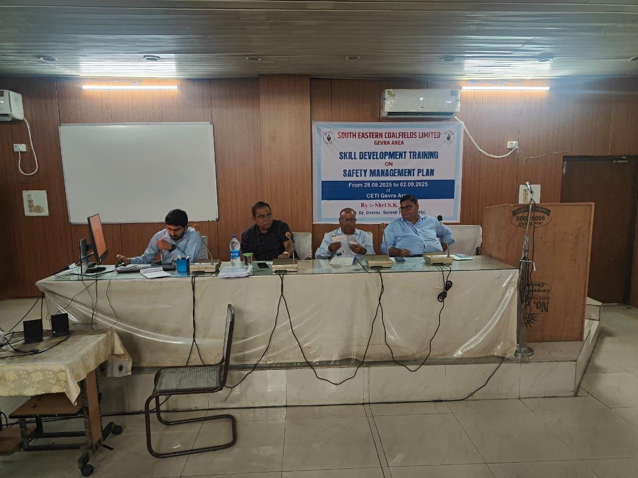 आज दिनांक 28/8/25 से 2/9/25 तक सेफ्टी मैनेजमेंट प्लान पर स्पेशल प्रशिक्षण आयोजित सीईटीआई गेवरा में आयोजित किया गया जिसके ओपनिंग सेशन में विशिष्ट अतिथि -मुख्य वक्ता श्री एसके दत्ता का स्वागत श्री श्री आरबी सिन्दूर महाप्रबंधक खनन / परियोजना अधिकारी गेवरा , श्री मयंक वर्मा ,महाप्रबंधक खनन/ खानप्रबंधक गेवरा ओसीपी तथा एससी त्रिपाठी क्षेत्रीय सुरक्षा अधिकारी गेवरा क्षेत्र ने पुष्प गुच्छ भेंटकर किया